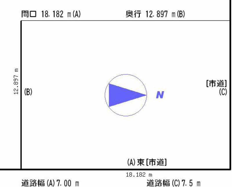 - 北東向き角地 間口 18.182m
