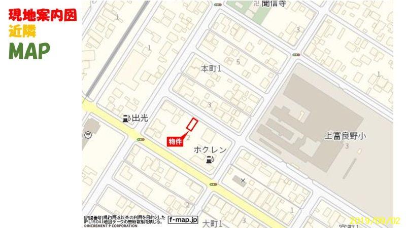 ホクレン上富良野給油所に隣接、道々から一本北側の道路になります。南側は3.6mの公道で明るく開放的です、スーパーはふじ徒歩3分郵便局は徒歩2分、スタンドは1分。役場・町立病院・かみんなどの公共施設も徒歩圏です