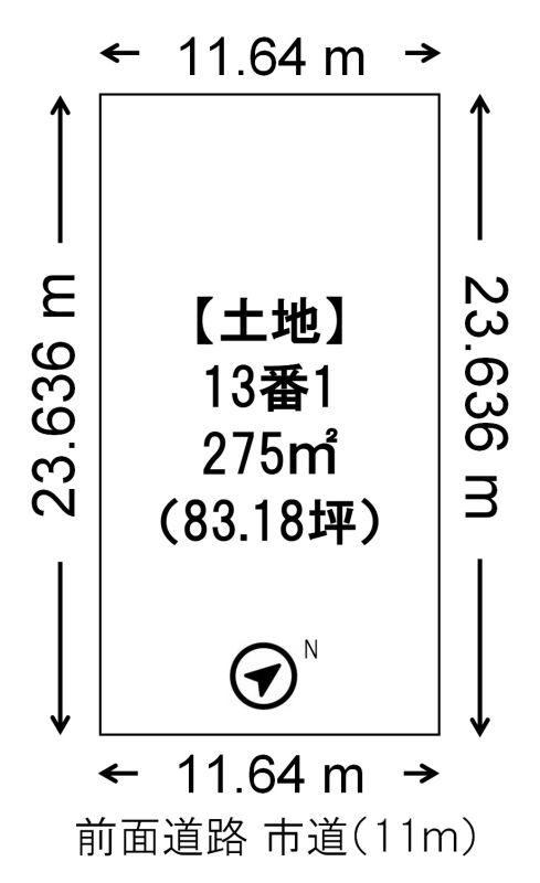 - 東向き 間口 11.64m