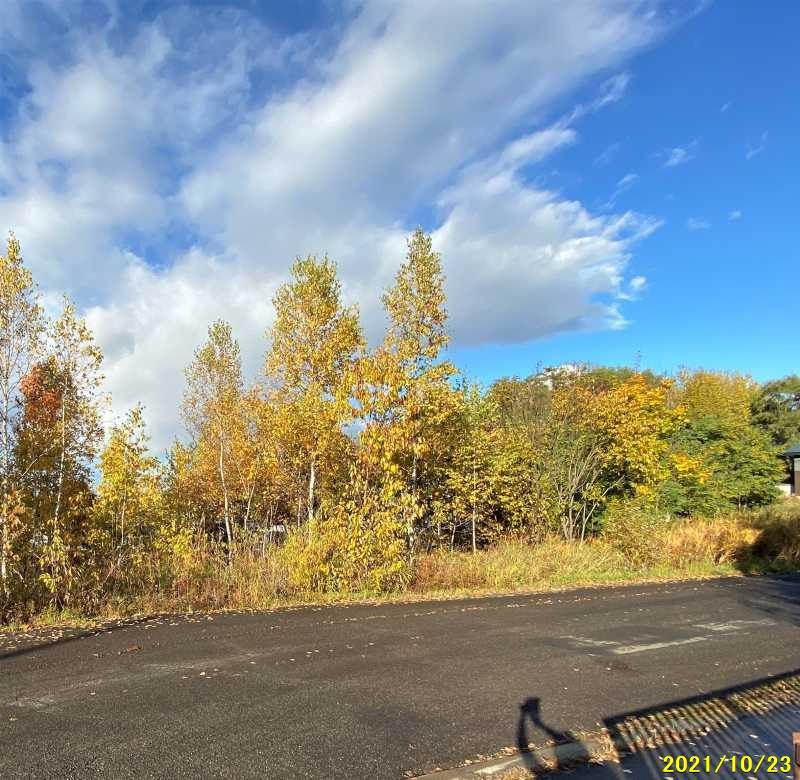 敷地内に立木がありますが現状渡しです。道路と敷地内に高低差があります。舗装の道路と敷地の間に素掘りの側溝があります。
