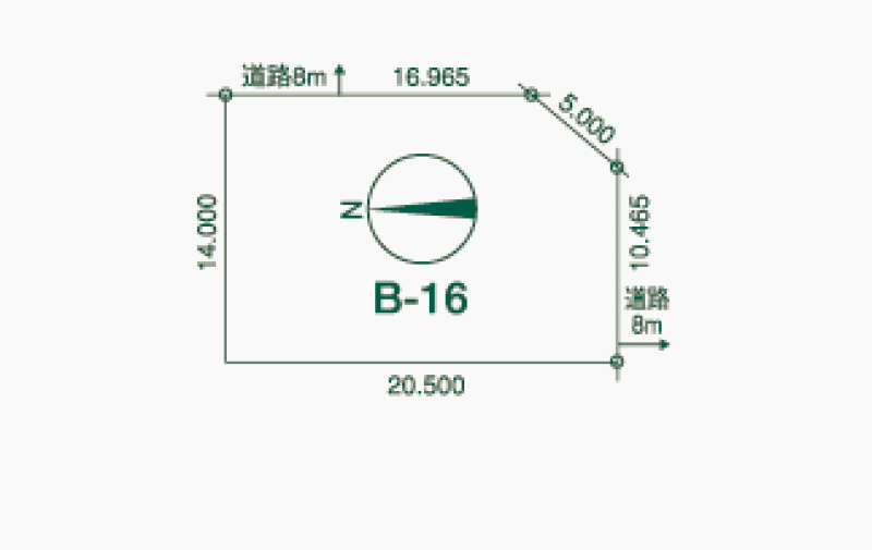 - 南東向き角地 間口 16.965m