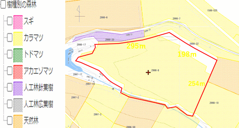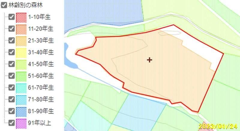 場所はここですhttps://goo.gl/maps/uEMnpuiFeknTnqJE6 日の出ダムの上流、東側に位置する山林です。落葉松の20年物です。判り易い立地でいつでも見に行けます。落葉キノコが採れるようになるといいですね。森林組合の入会相談も代行します。