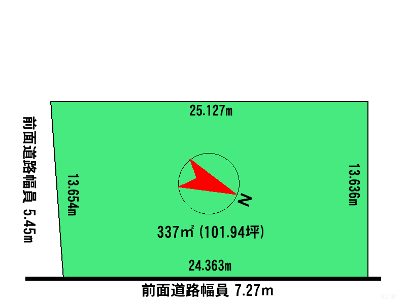 - 北東向き角地 間口 24.363m