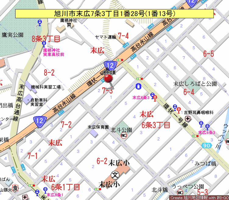 - 旭川市末広7条3丁目1番28(1番13号)