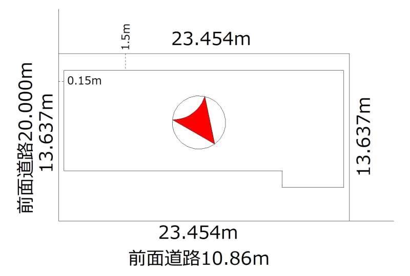- 北東向き角地 間口 23.454m
