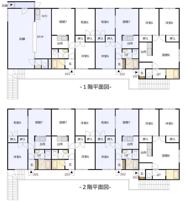 ■2LDK×7戸、店舗×1戸の収益物件になります。現在2LDKが1戸空室です。