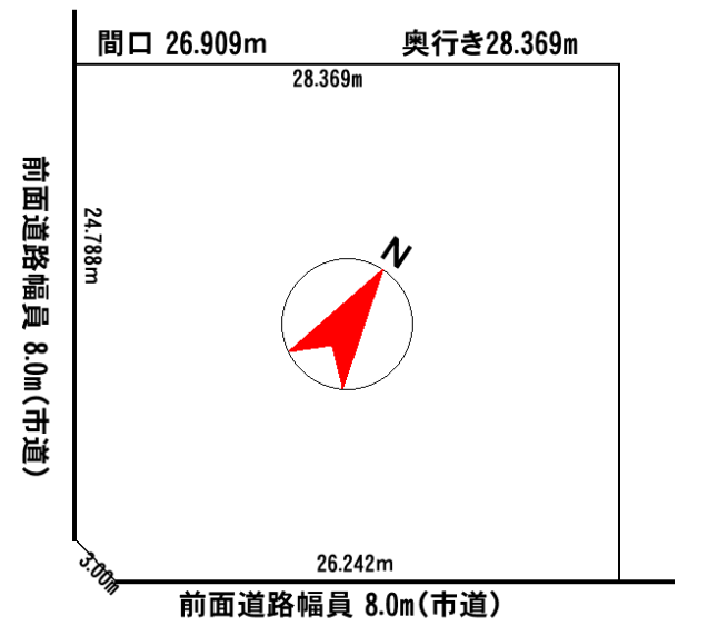 - 南東向き角地 間口 26.242m