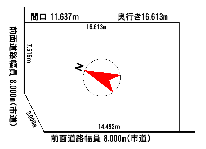 - 北向き角地 間口 7.516m