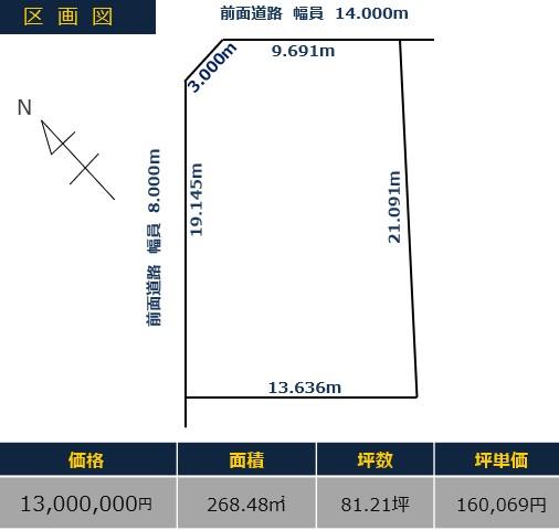 - 北向き角地 間口 9.6m