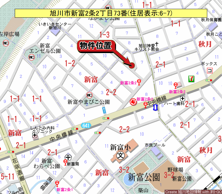 - 旭川市新富2条2丁目73番(住居表示:6番7号)