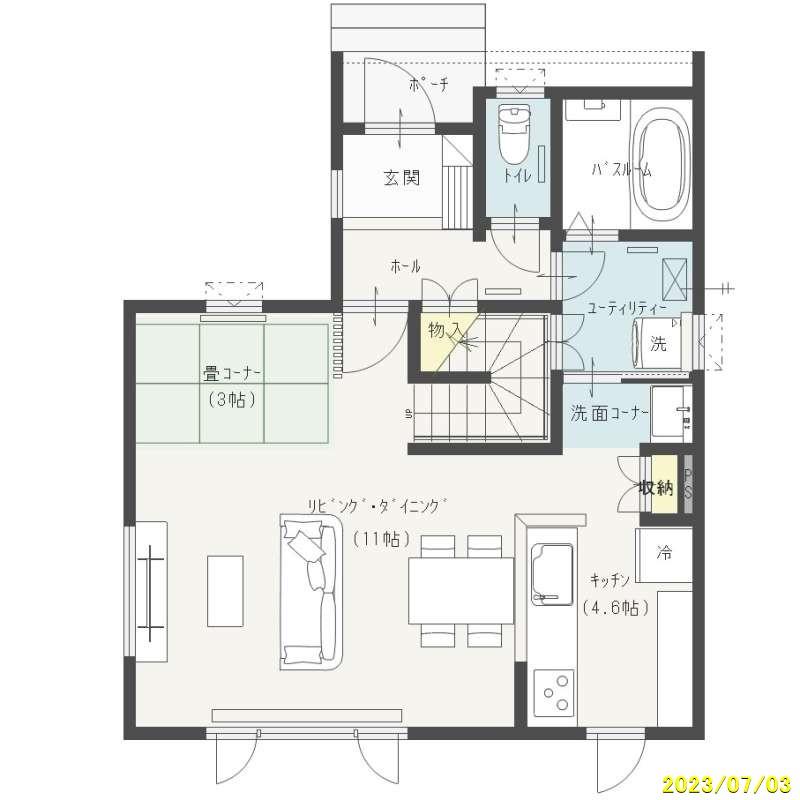 ■ 熱源:エコジョーズ、第1種換気システム、UA値:0.27 ZEH Oriented BELS評価書あり、駐車3台可能。 ジャパンディスタイルの落ち着いた内装。 洗面コーナーと脱衣室を分離。 キッチンにはパントリーを設けて家事がラクに。