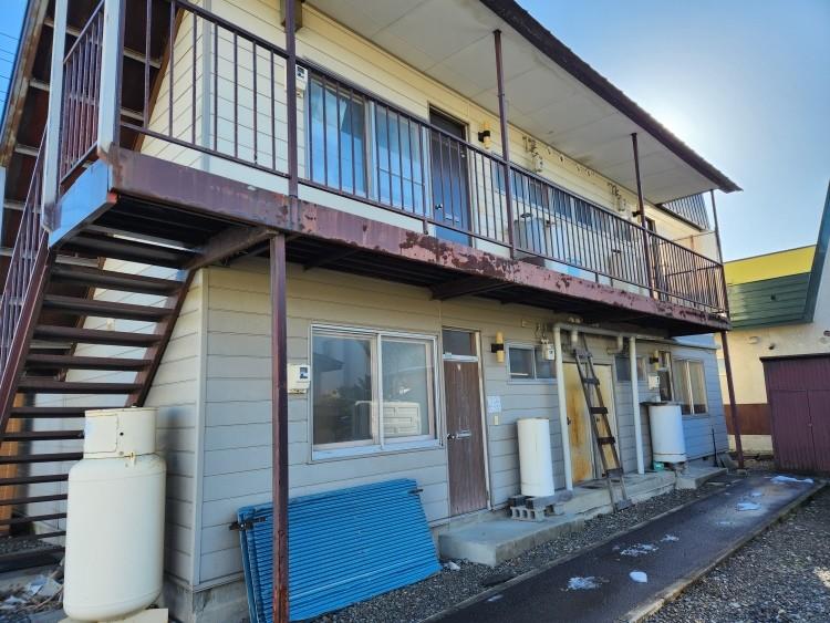 2LDK×4戸入りアパート。現在全空室です。過去に屋根を2重にするリフォームを行っております。室内は修繕が必要です。物置が複数あり、通路部分にロードヒーティングもございます。