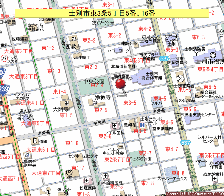 - 士別市東3条5丁目5番、16番