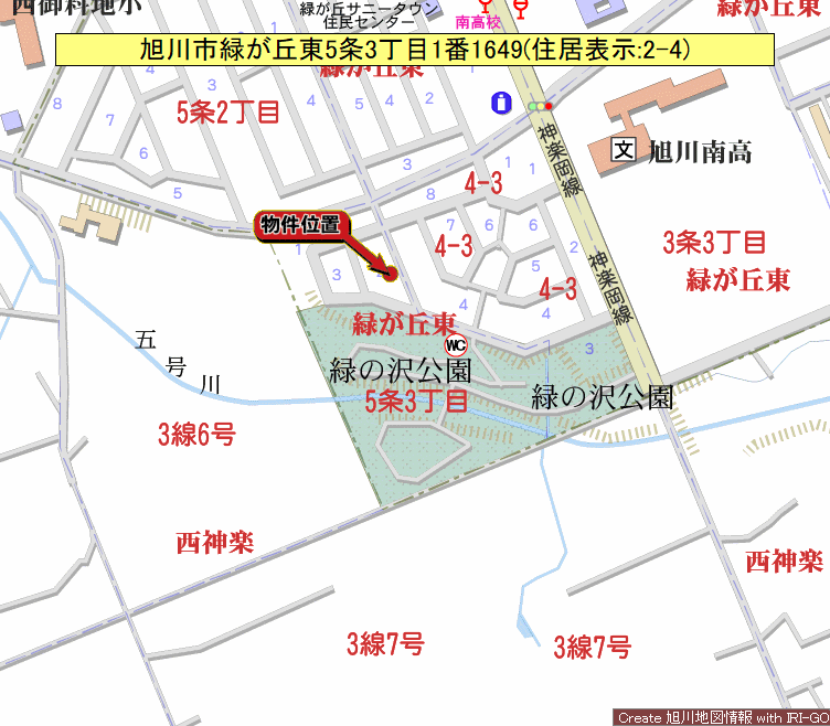 - 旭川市緑が丘東5条3丁目1番1649(住居表示:2番4号)