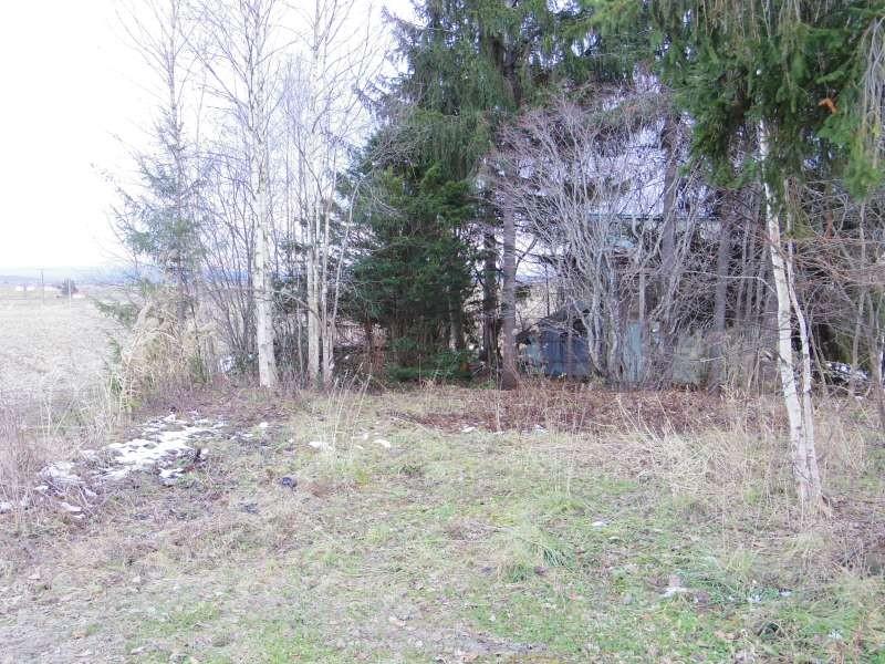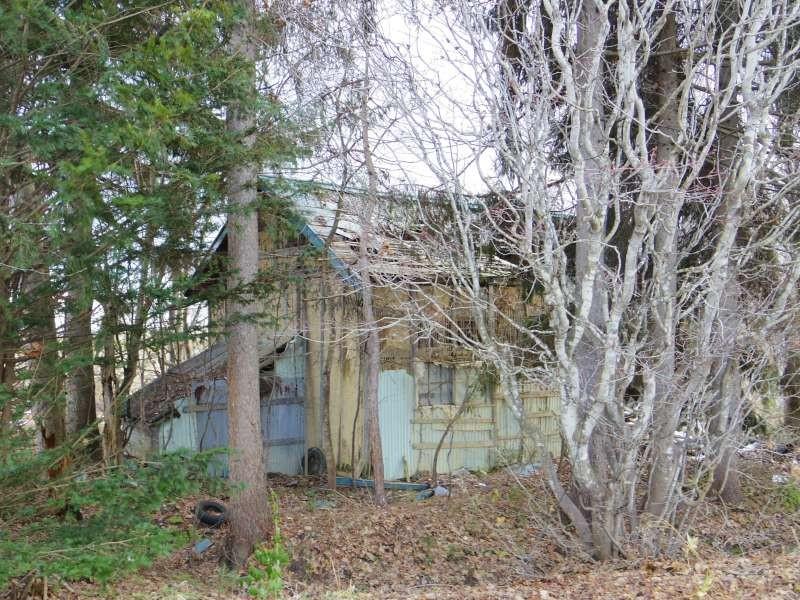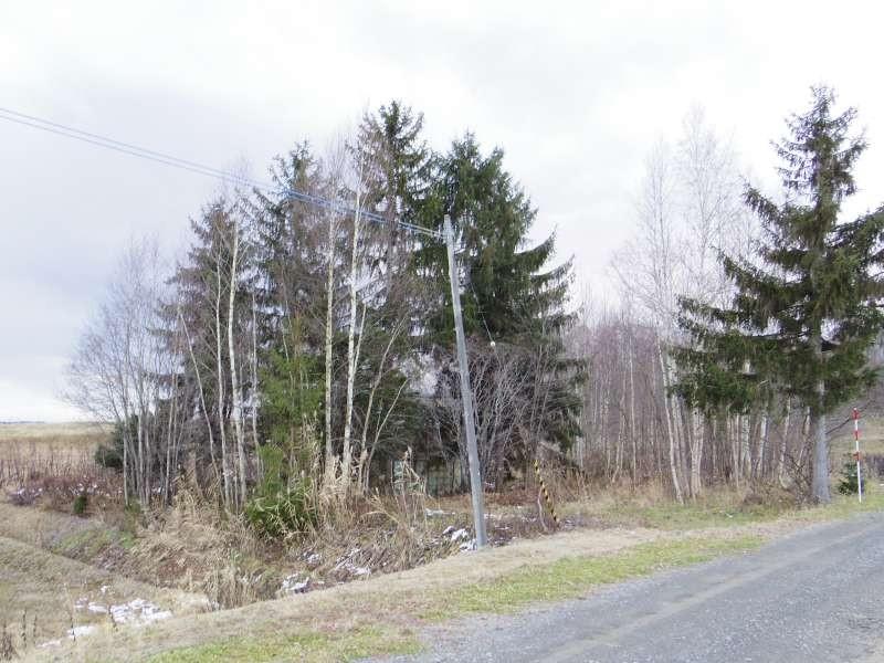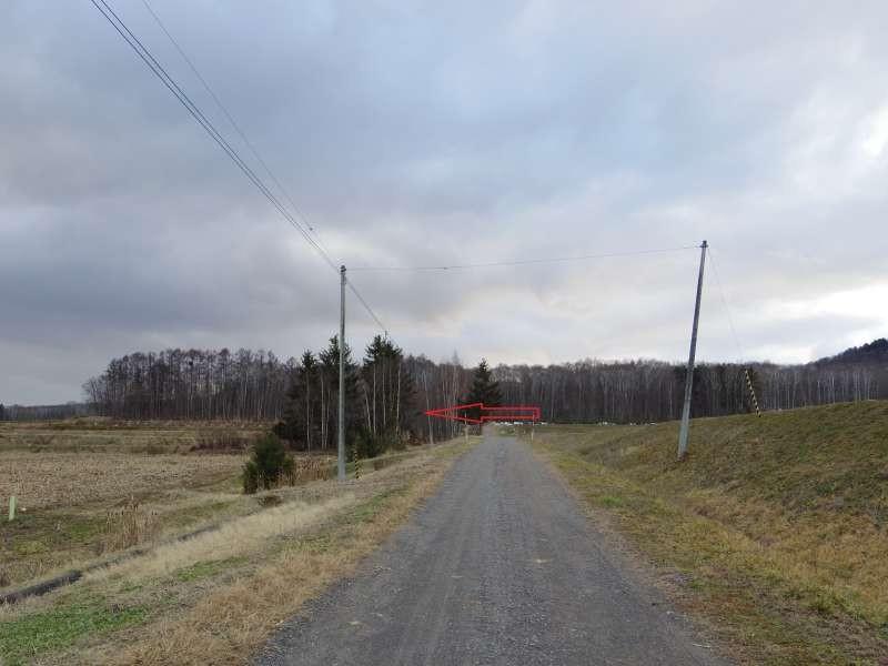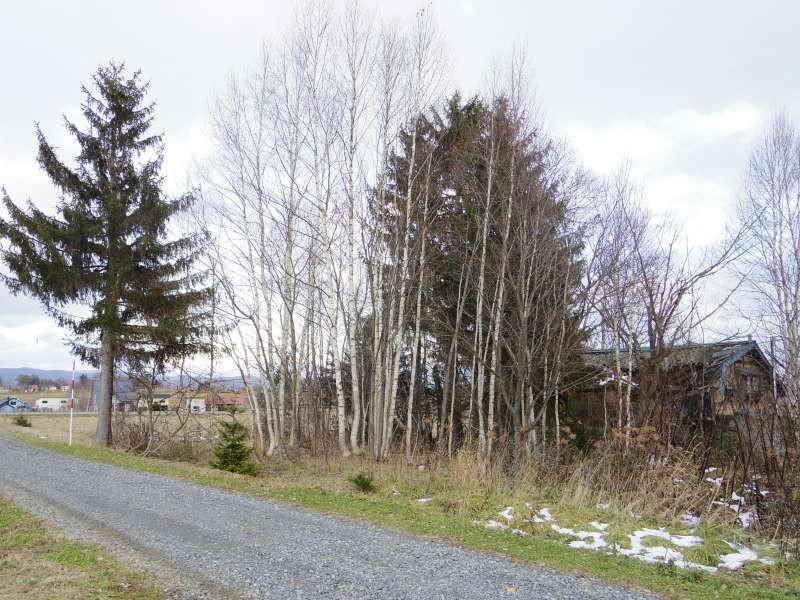 前面道路未舗装(町道)・現状住人がいない為、冬期間の除雪は入っていません。対象地は現地樹木部分の約半分です。