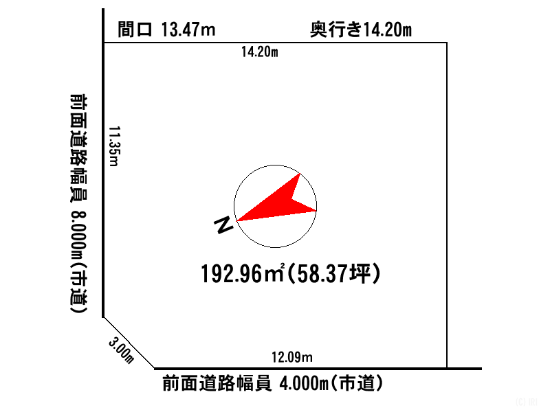 - 北向き角地 間口 11.35m