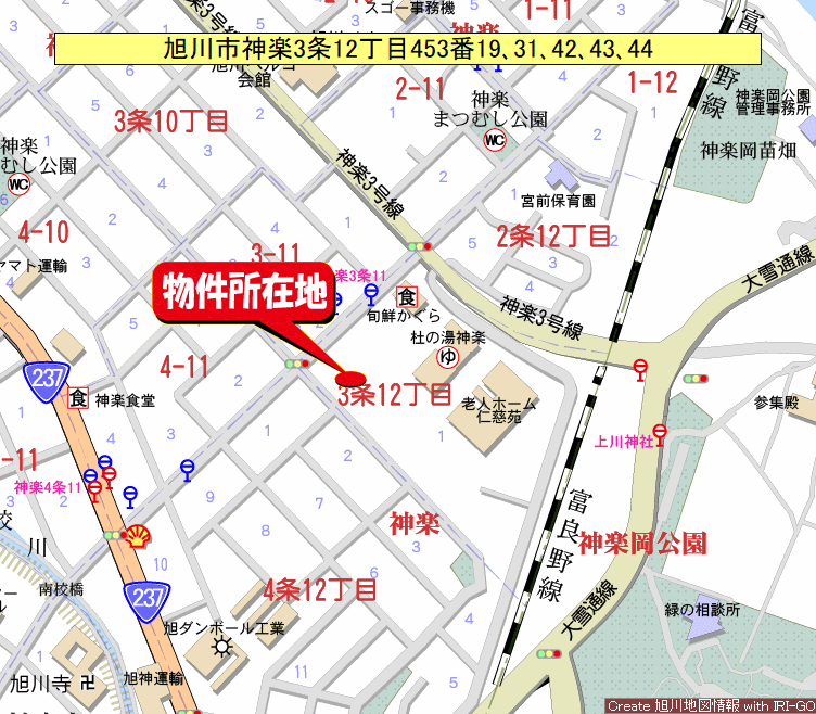 - 旭川市神楽3条12丁目453番19、31、42、43、44