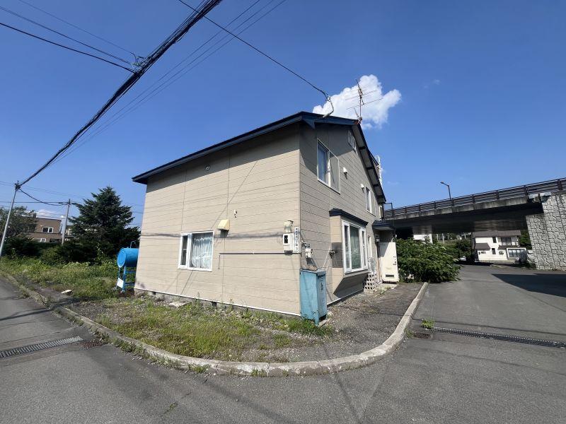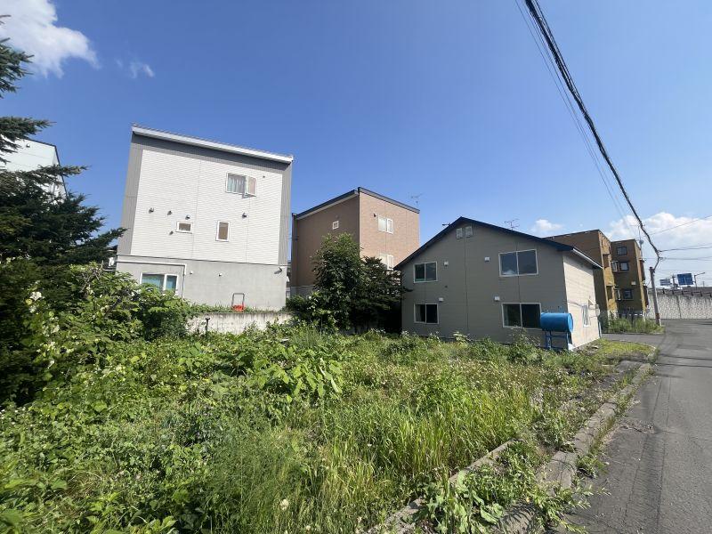 ■雪止めフェンス付き、エアコン付き、スーパーセンタートライアル神楽店が目の前です!北東側道路との高低差があります。