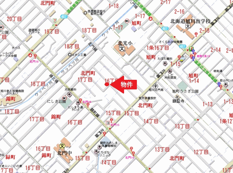 - 旭川電気軌道「北門町16丁目」バス停徒歩6分