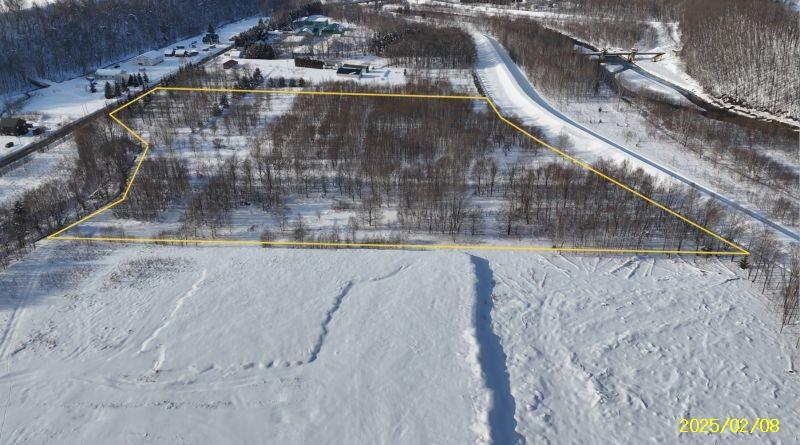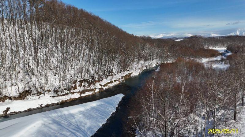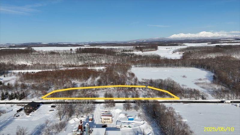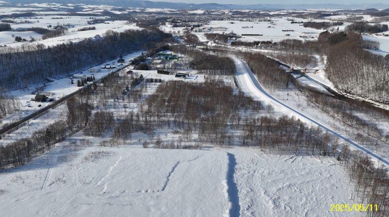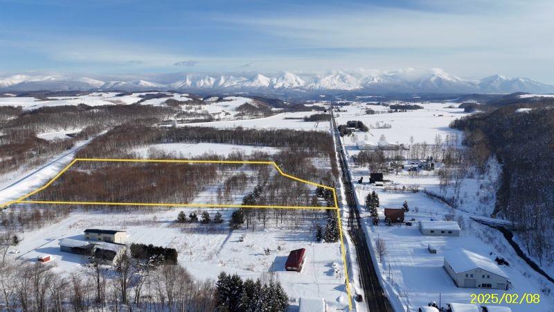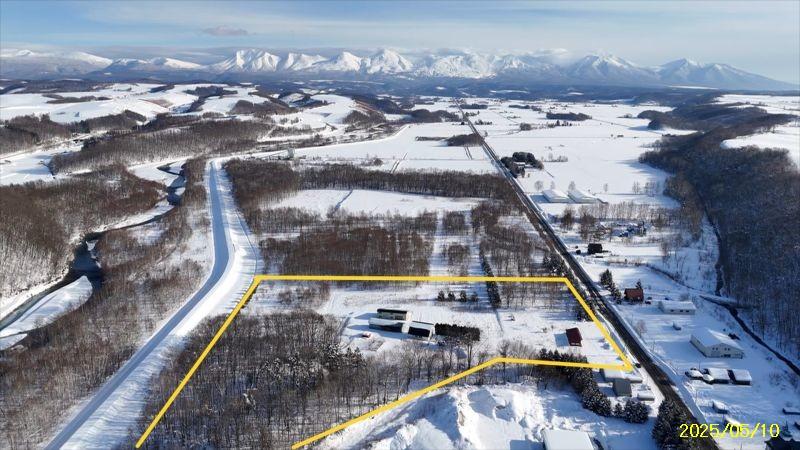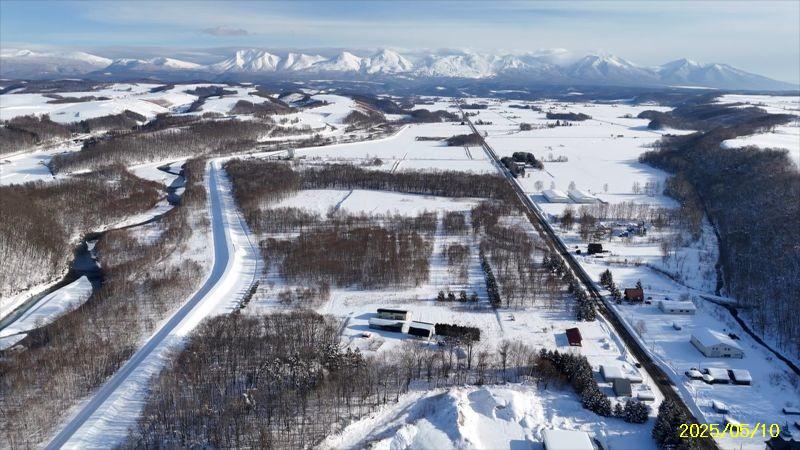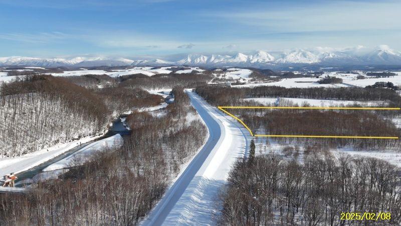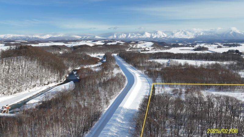 R3区画1664坪2497万円、リバーサイド区画 白金道々沿い河川敷地に囲まれたウオーターサイド、十勝岳連峰も美瑛の丘も林も全貌!
