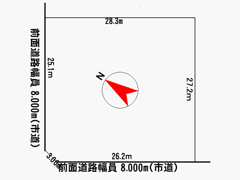 - 南西向き角地 間口 26.2m