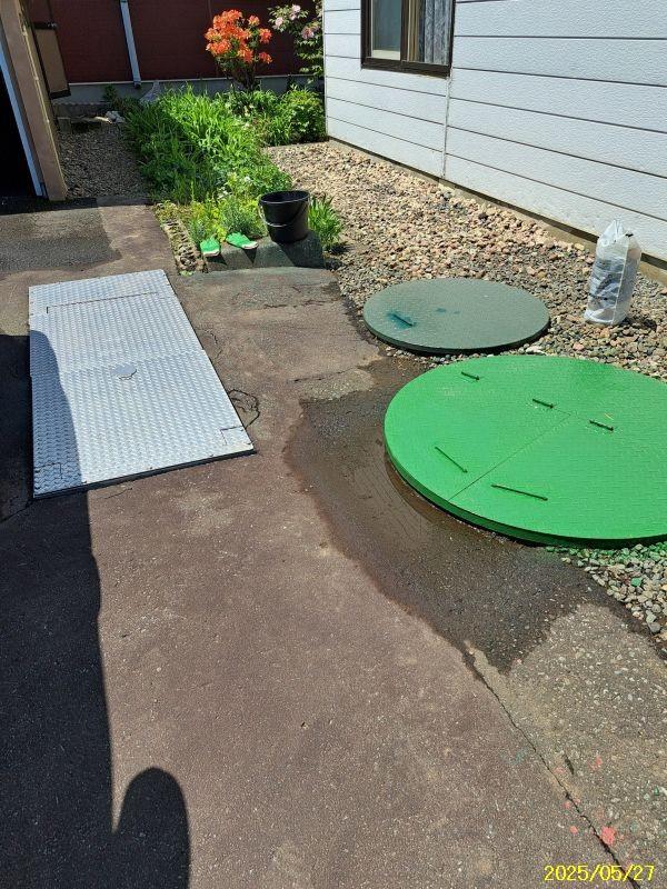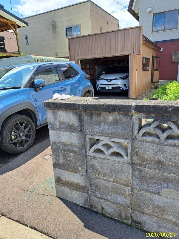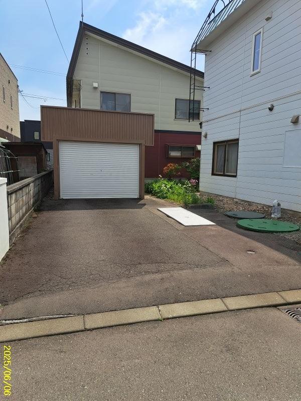 融雪槽は地下水と灯油の2か所あります。駐車スペースは車庫と青空の2台。