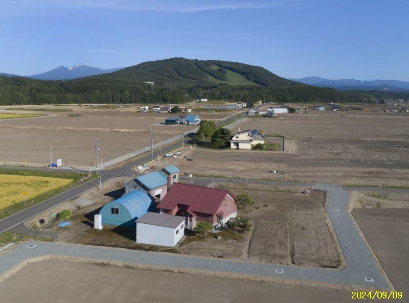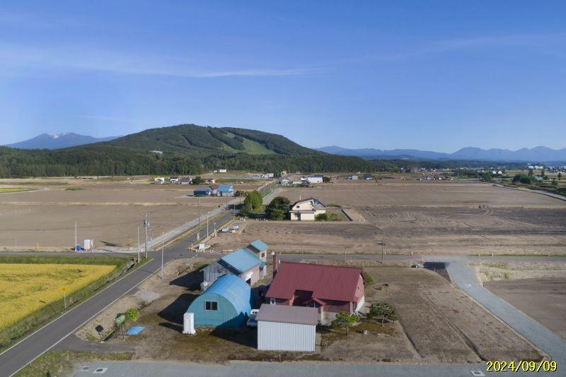 東川町中心部から車で約10分ほどのところにある田園風景広がる農家さん跡地です。十勝岳連峰が見渡せる角地、広々700坪ある敷地に古民家と大きな納屋が2棟と車庫があります。
