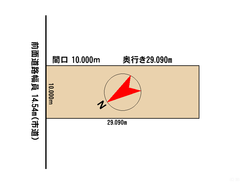 北東向 間口10.0m奥行29.090m