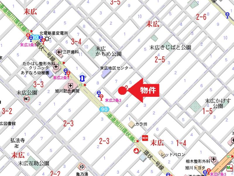 徒歩10分圏内に、旭川信用金庫末広支店、コンビニ、ツルハドラッグ、陵雲小、広陵中があり、生活利便施設多く子育てにも向いている立地です。
