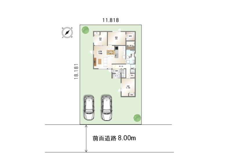 - 南東向き 間口 11.818m