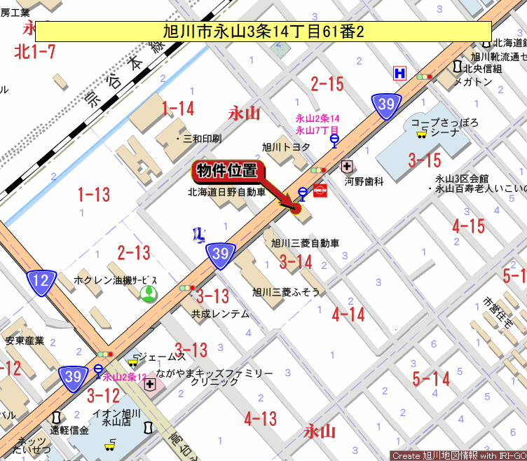 - 旭川市永山3条14丁目61番2(住居表示3-2)