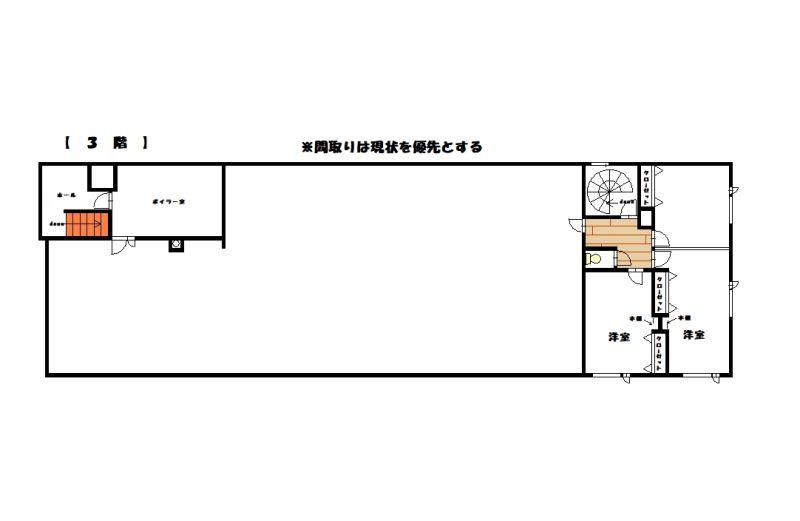 住宅部分1階台所、浴室、トイレ、居間・2階居室3部屋・3階居室3部屋、トイレ、洗面所・外にはカーポート、物置有り。