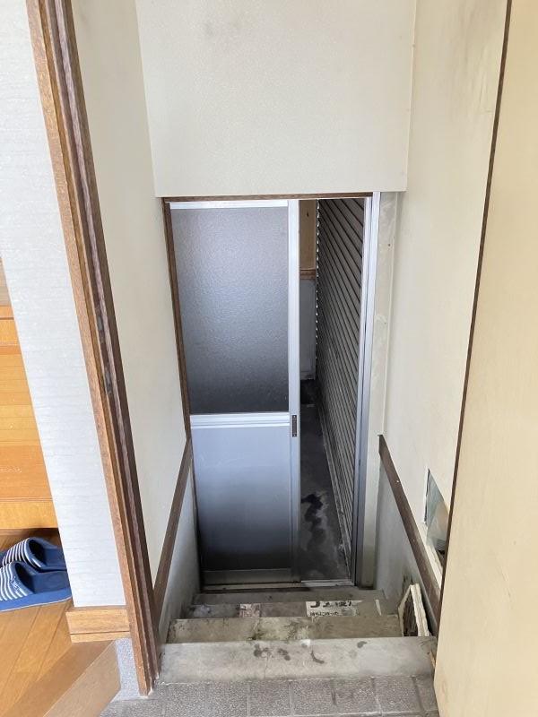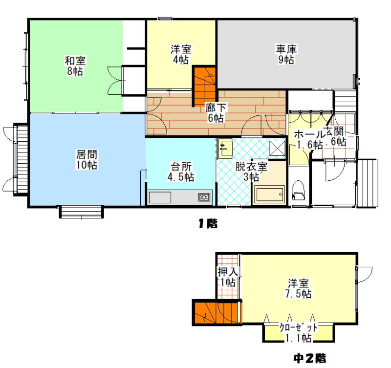 車庫兼物置が付いた住宅で車庫上が中二階の部屋になっております。