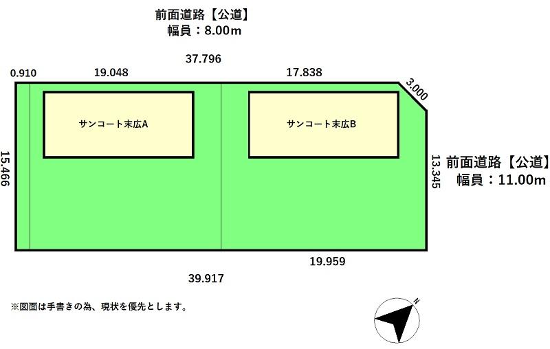 - 北東向き角地 間口 37.796m