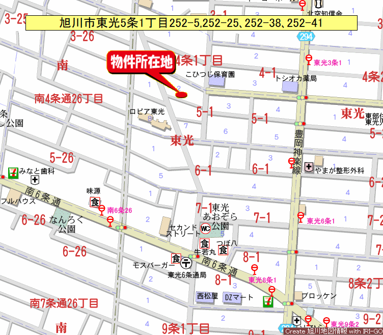 - 旭川市東光5条1丁目252-5,252-25、252-38、252-41