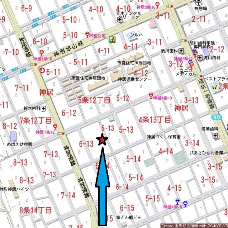 - 旭川市神居6条13丁目1番5号(地番:543-30)