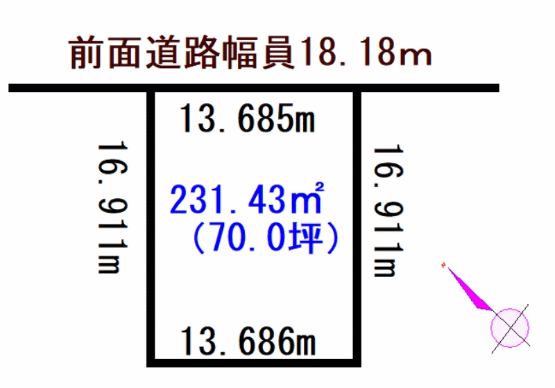 - 北東向き 間口 13.685m