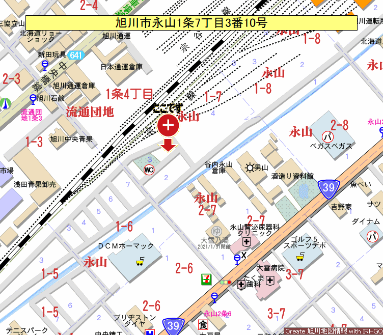 - 旭川市永山1条7丁目58番28、38番21(住居表示 3番10号)