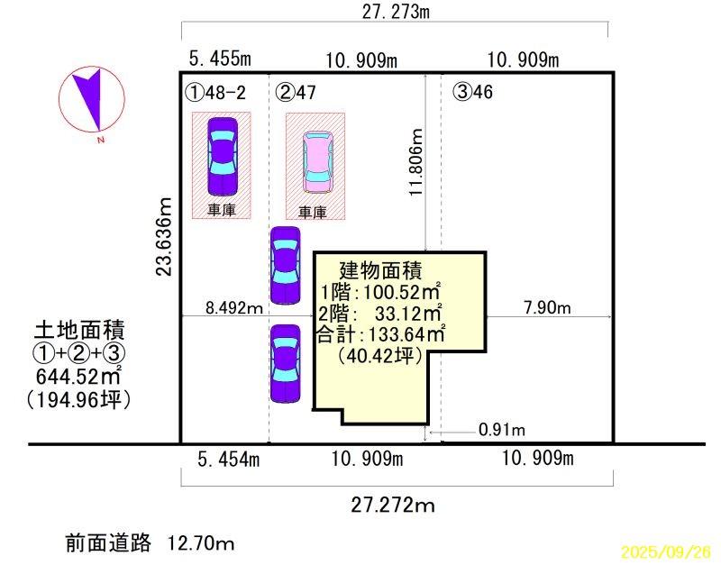 - 北向き 間口 27.272m
