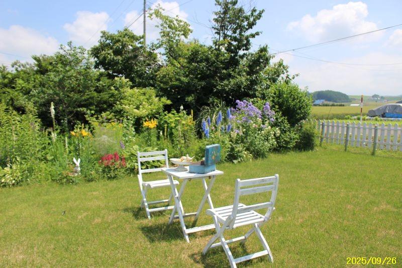 間取り図内の納戸は部屋に改造済。自然が豊かで虫と野鳥が多いです。敷地の約半分は芝生やお花畑。パーゴラの下でBBQできます。大きな倉庫兼ガレージあります。「丘の町美瑛」ですが、丘のホワイトアウトの吹雪より平地が住みやすい。