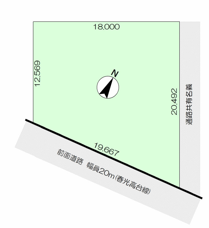 ■幅員20.0m道路(春光高台線)に面しています。周辺の土地は資材置場・倉庫・畑・家庭菜園などに使用されています。