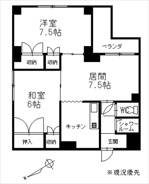 お部屋は南東向きにバルコニーのついた日当たりの良い6階部分の2LDKです。平成27年にトイレとシャワールームのリフォームを行っております。