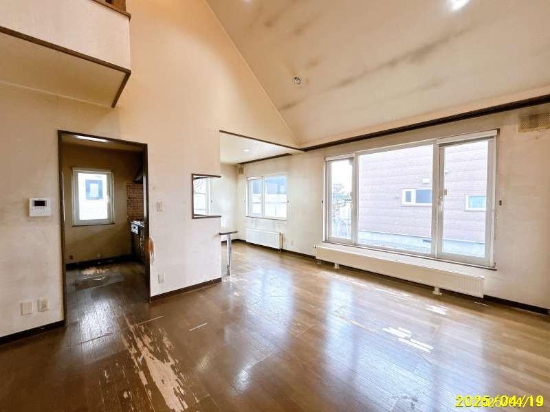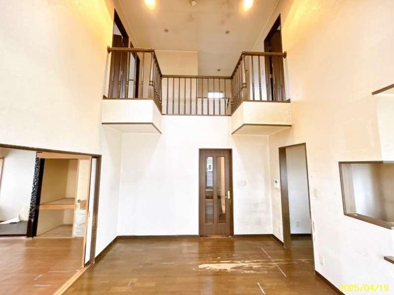 ◆4LDKの一戸建て住宅です。駐車スペース車庫1台と駐車スペース1台の計2台。リビングが吹抜の開放的な室内です。