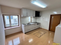 □2025年洋室改修、車庫塗装、駐車スペースアスファルト工事、洗面台新設、照明部分新設、スノーダクト点検、外壁・窓の高圧洗浄、美装清掃。間取りは使いやすい平屋建ての収納が多い3LDKです。リビングにエアコン完備、キッチンスペースは広