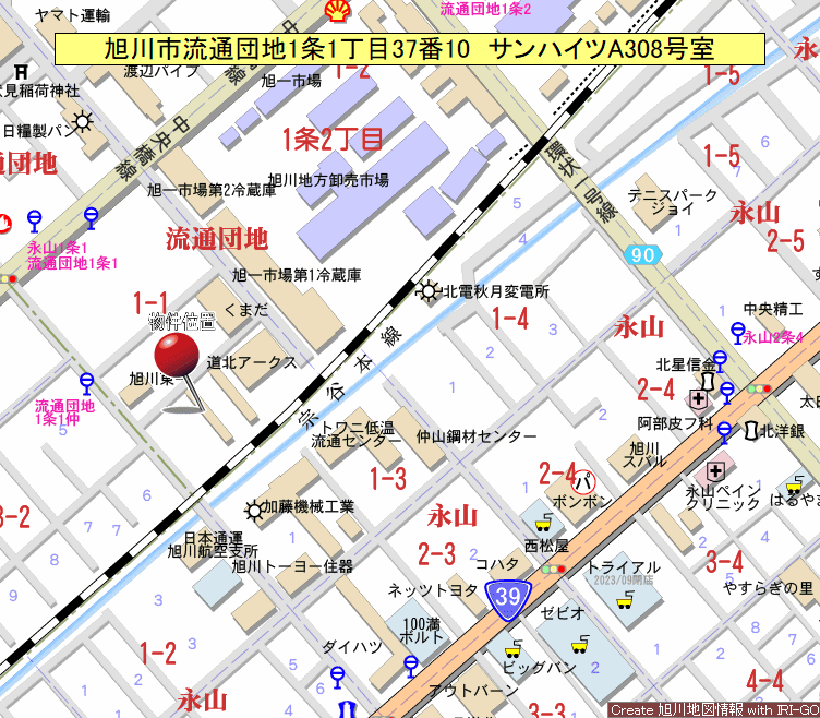 - 道北バス 流通団地1条1丁目仲停 徒歩2分、流通団地1条1丁目停 徒歩5分