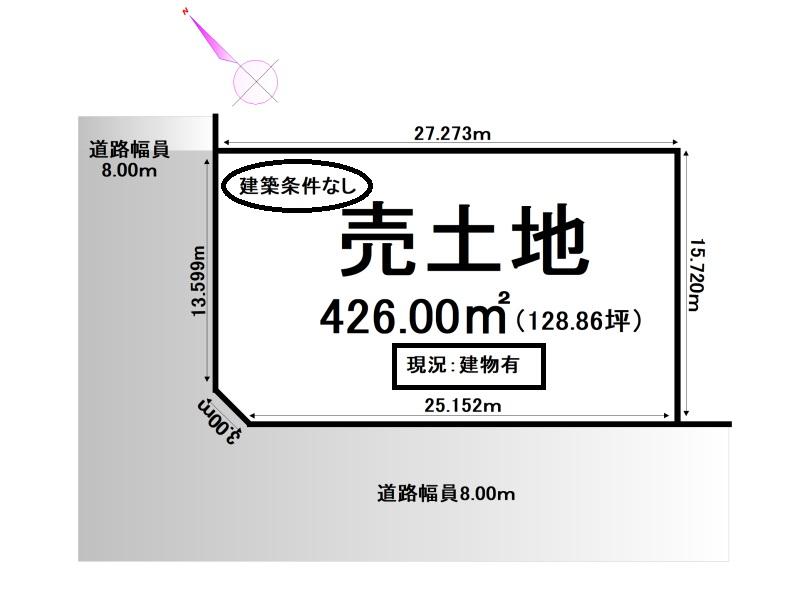 - 西向き角地 間口 25.152m