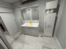 ■大理石調のオシャレなフロアタイルを使用しており、白を基調としたシンプルモダンなお家です。