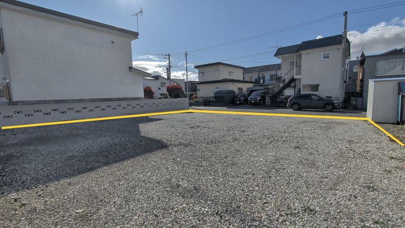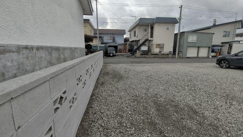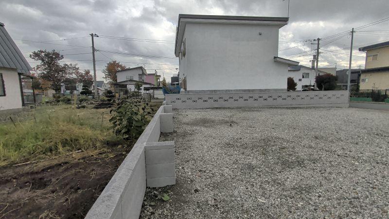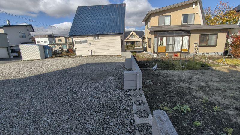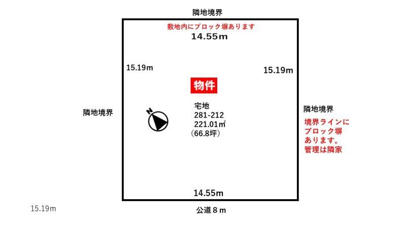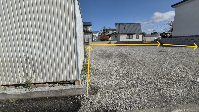 間口が14.5m!広くて使い易い、平坦で砂利敷き、建物解体済みです、北側に低くブロック塀が残してあります、境界がしっかりして際まで有効に使えます。東側のブロック塀は隣家が管理します。