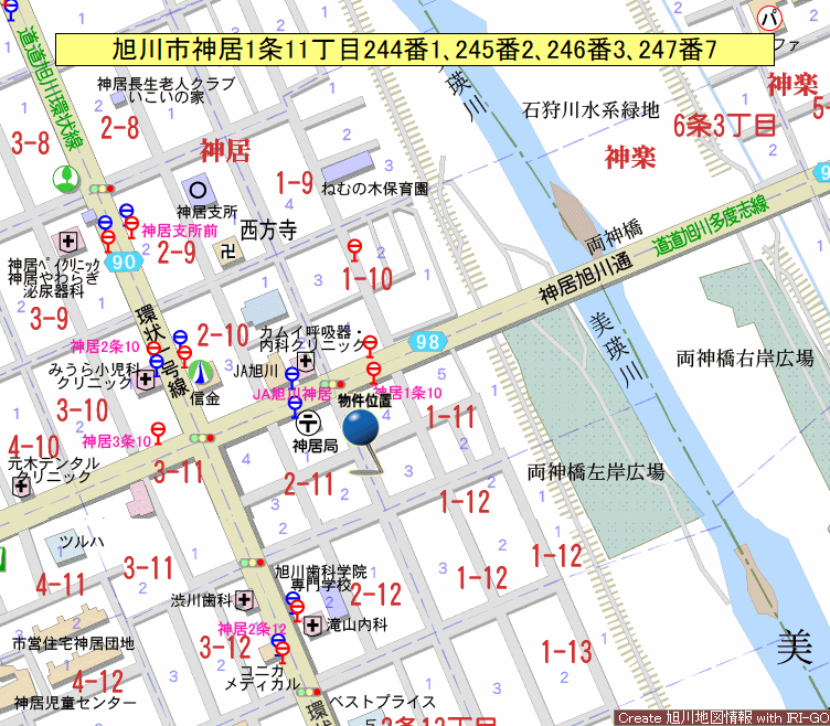 - 旭川市神居1条11丁目244番1、245番2、246番3、247番7