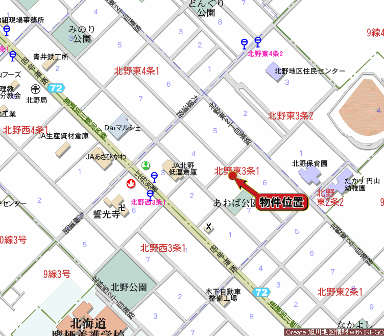 - バス停 北野西3-1 徒歩4分